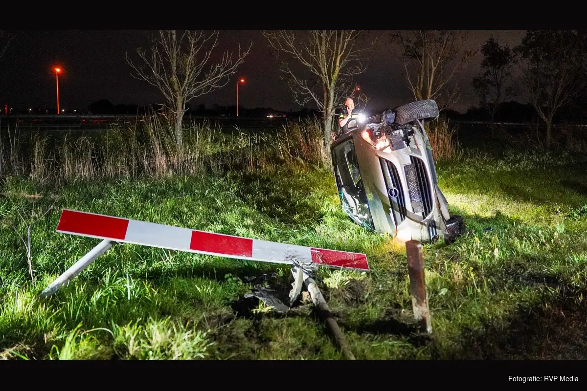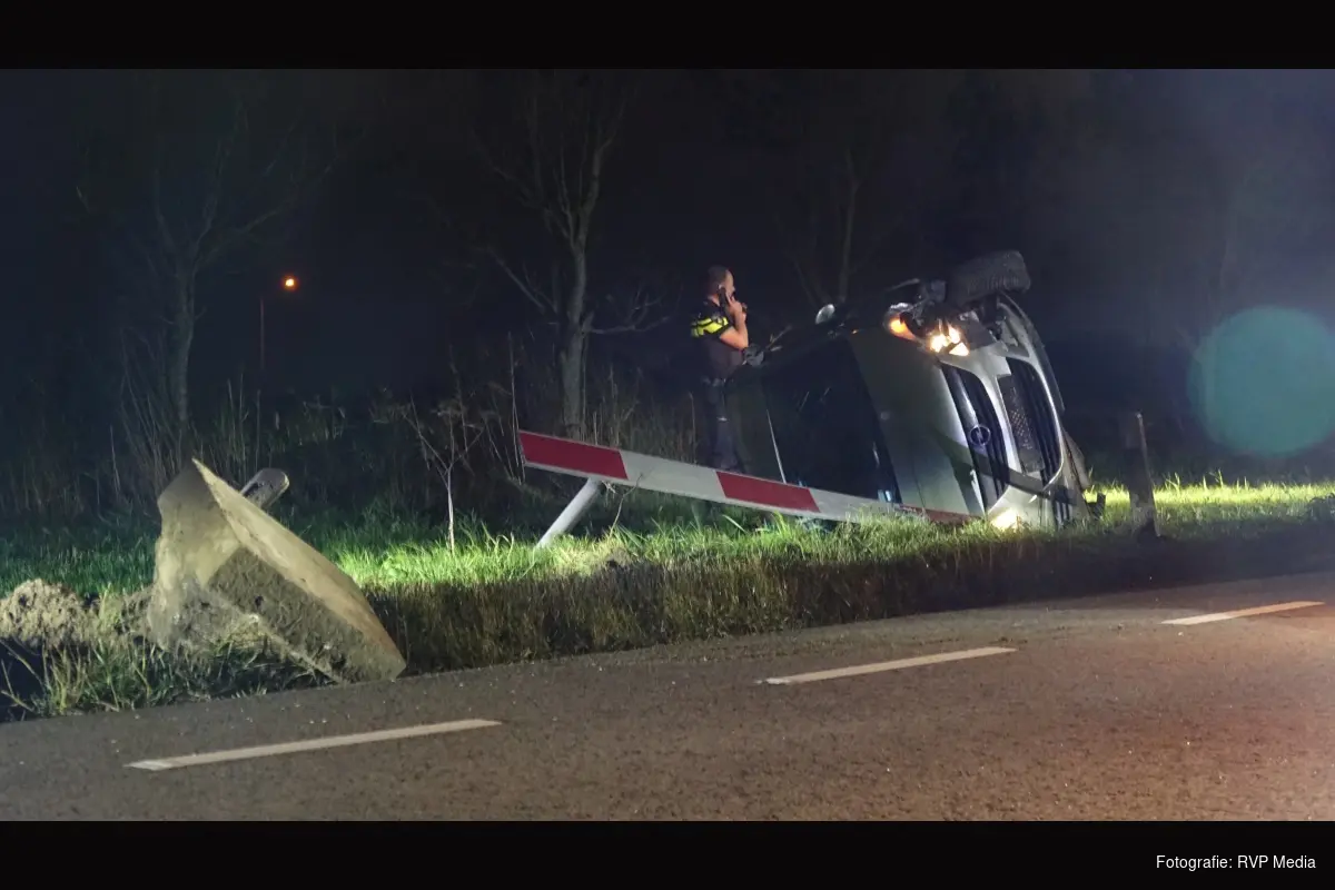 BERGEN - Op de Kanaaldijk langs de N9 is dinsdag, kort voor middernacht, een auto op zijn kant geraakt na een eenzijdig ongeval.