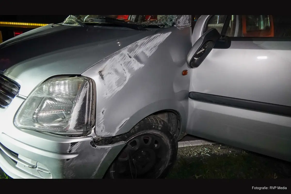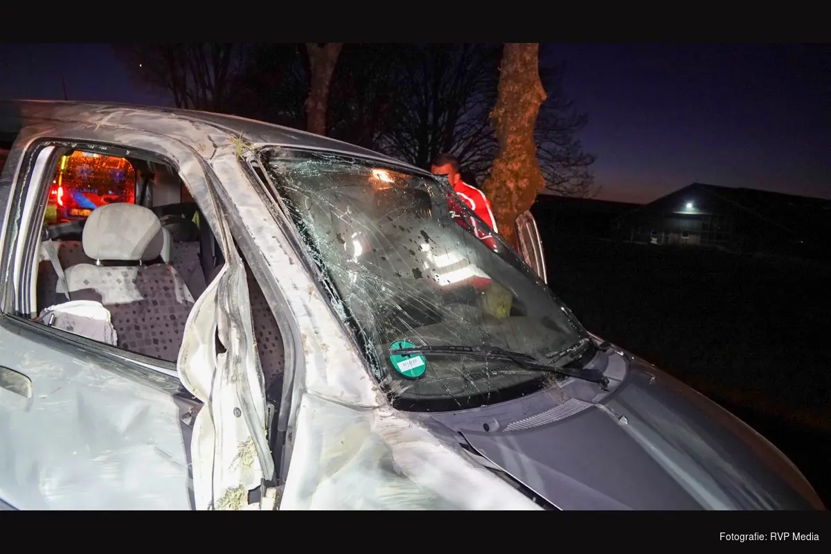 De auto kwam zwaarbeschadigd op het fietspad tot stilstand. Alle vier de inzittenden zijn door het ambulancepersoneel nagekeken, maar wonder boven wonder hoefde niemand naar het ziekenhuis.