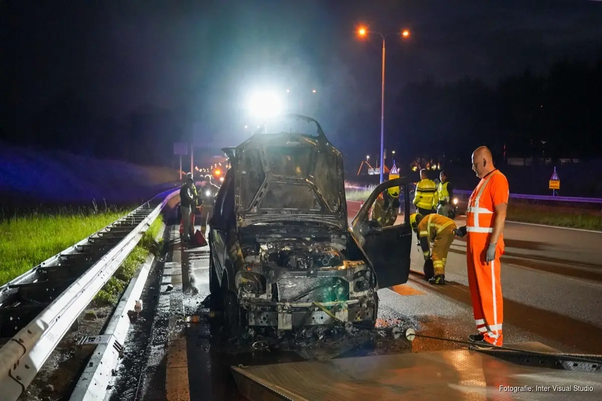 Mogelijk ontstond de brand door kortsluiting. Achter de auto zat een aanhanger met een auto erop. Deze aanhanger kon snel worden losgekoppeld.
