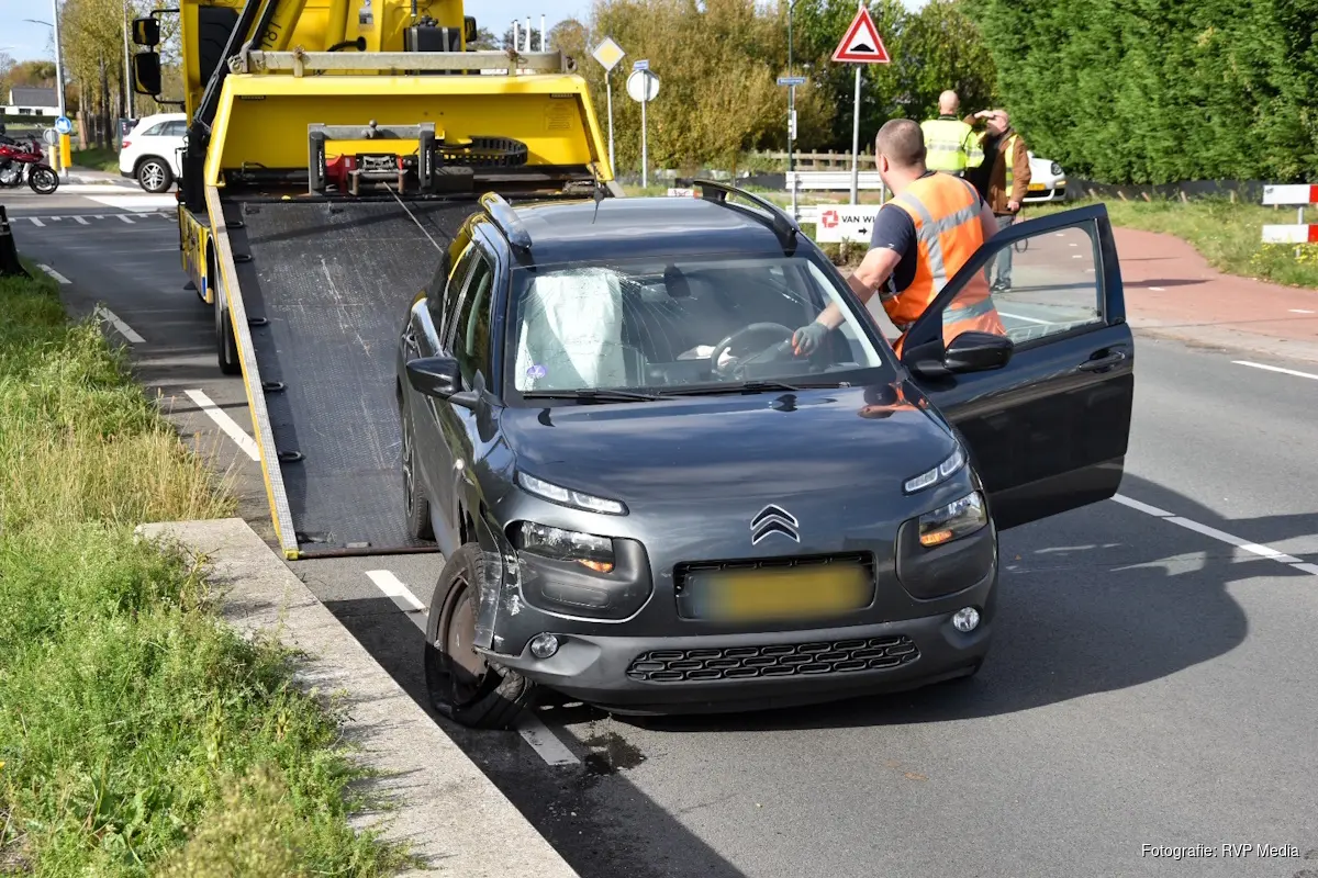 Een berger heeft de fors beschadigde auto afgesleept. De weg was tijdelijk deels afgesloten.