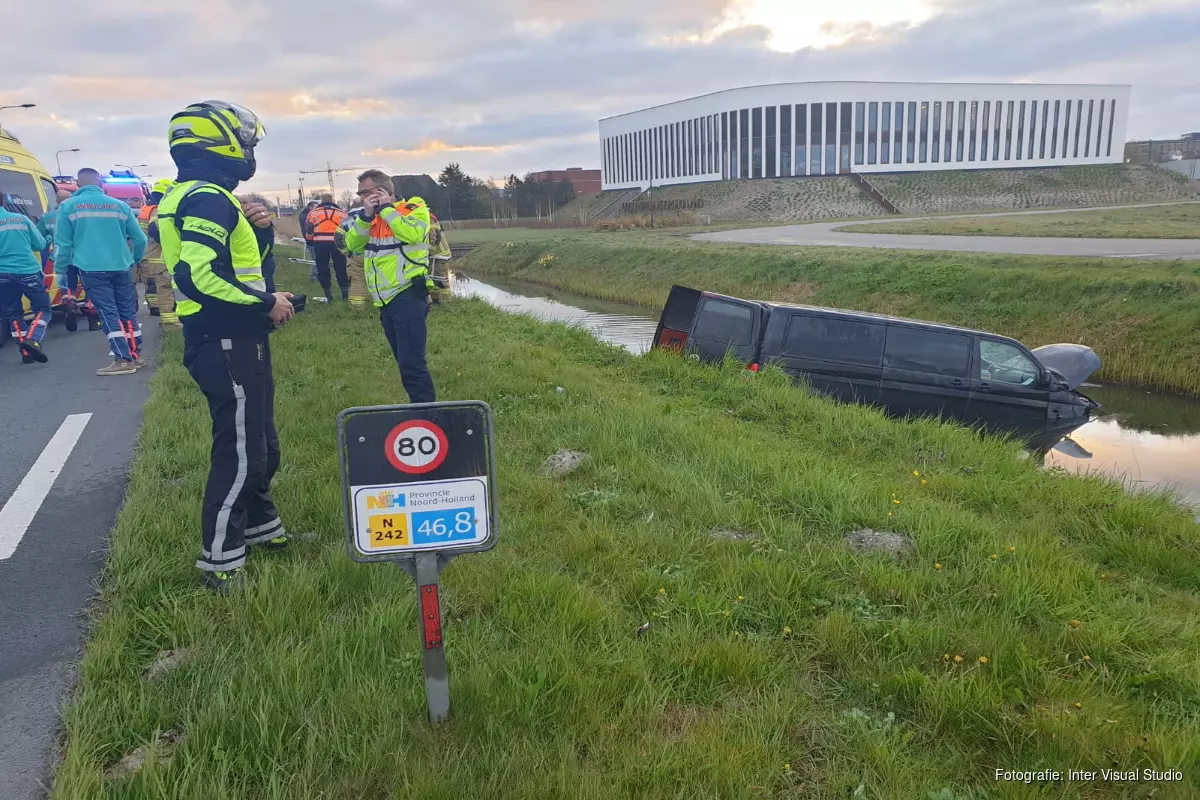 Volgens een getuige "schoot" de bestelbus over de weg, tussen twee auto's door, de sloot in. De brandweerduikers haalde het slachtoffer op het droge, maar deze is wel met onbekend letsel naar het ziekenhuis gebracht.