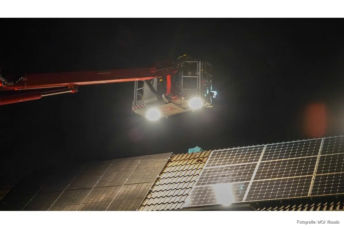 De brand bevond zich vermoedelijk in het schoorsteenkanaal van de woning en daarop rukte de brandweer met onder andere een hoogwerker uit.