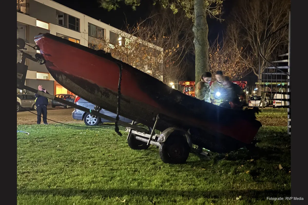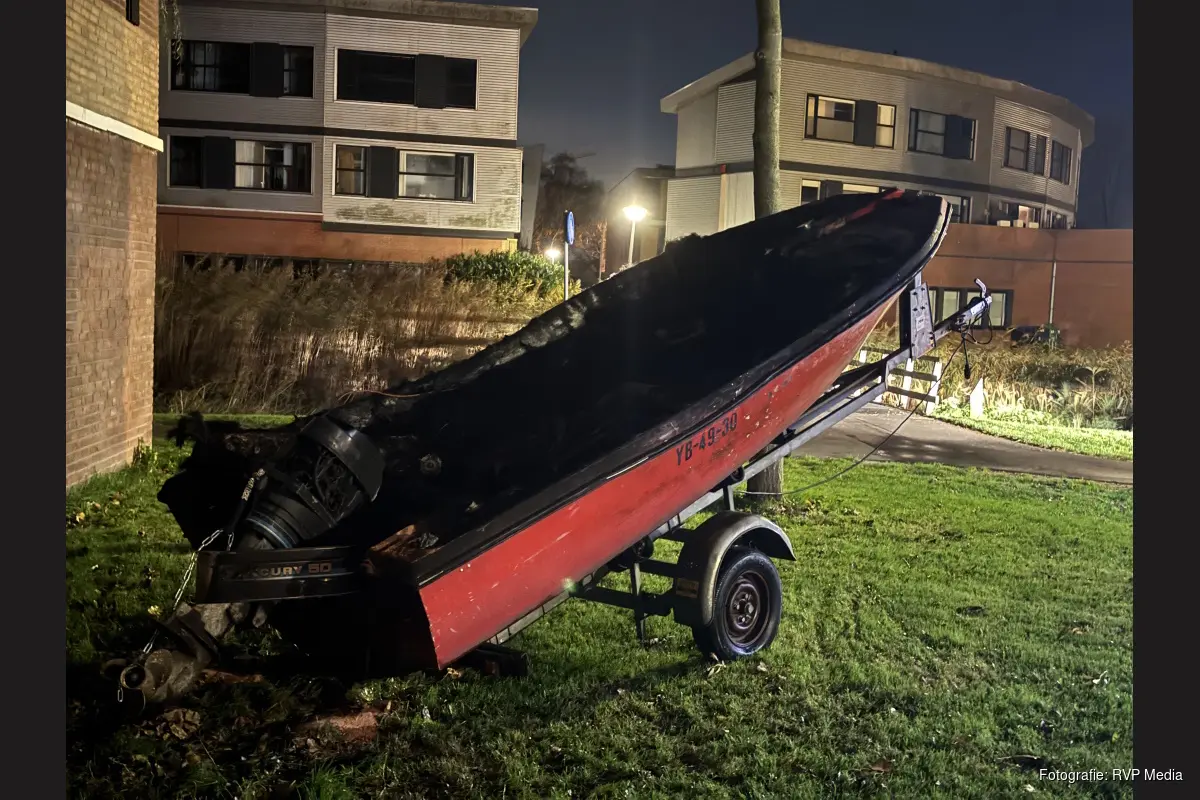De brand werd binnen enkele minuten opgeschaald naar middelbrand. Bij aankomst van de brandweer bleek het bootje niet in het water te liggen, maar op een aanhanger dichtbij een flat van meerdere etages.