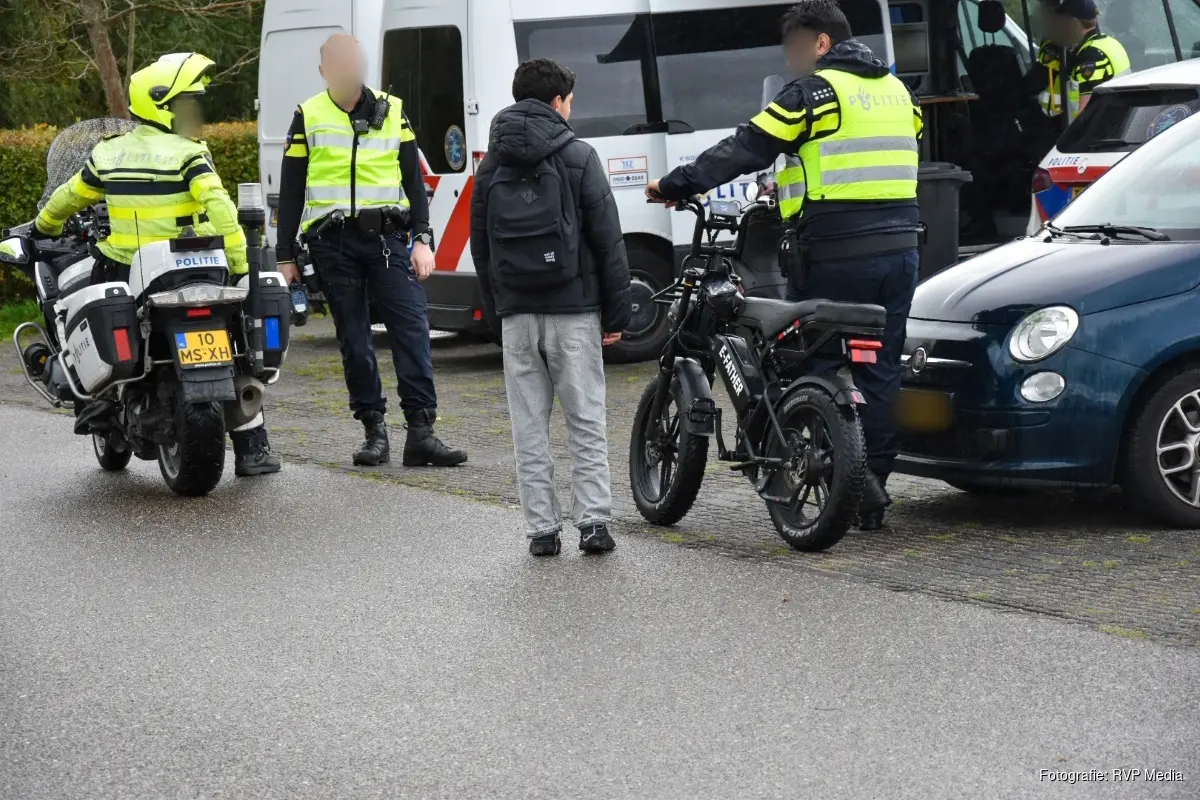 Ook meldt men dat er twee personen reden zonder rijbewijs, waarbij tevens een bromfiets in beslag genomen is. Tevens had men diverse WOK-meldingen (Wachten Op Keuring) zoals een lekke uitlaat of teveel geluid. Ook trof men een e-step en een fatbike aan die niet aan de eisen voldeed.