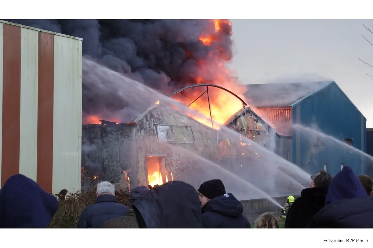 Momenteel woedt de brand in huisnummer 4A en 4B. De brand is begonnen in pand 4B en daarna overgeslagen naar een andere grote loods die er naast staat.