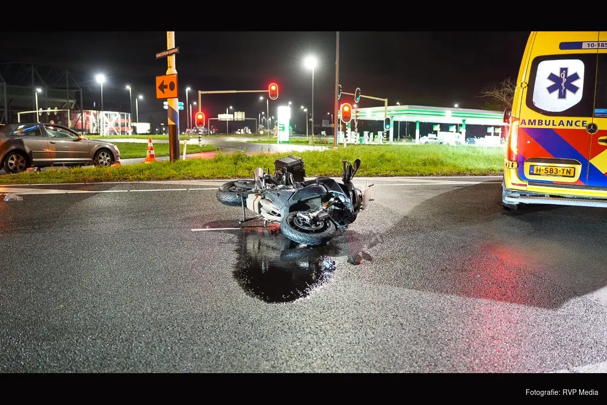 De bestuurder van de motor is ter plaatse gecontroleerd door het ambulancepersoneel en daarna overgebracht naar het ziekenhuis.