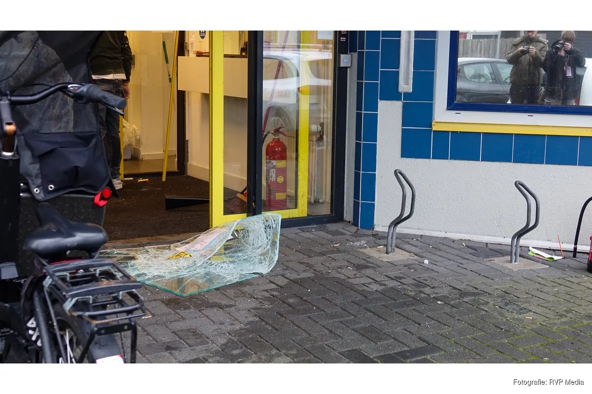 Bij het pand van een jeugd en gezinbeschermers organisatie zijn diverse ramen aan de voorzijde er uit geslagen. De politie heeft de straat afgesloten.
