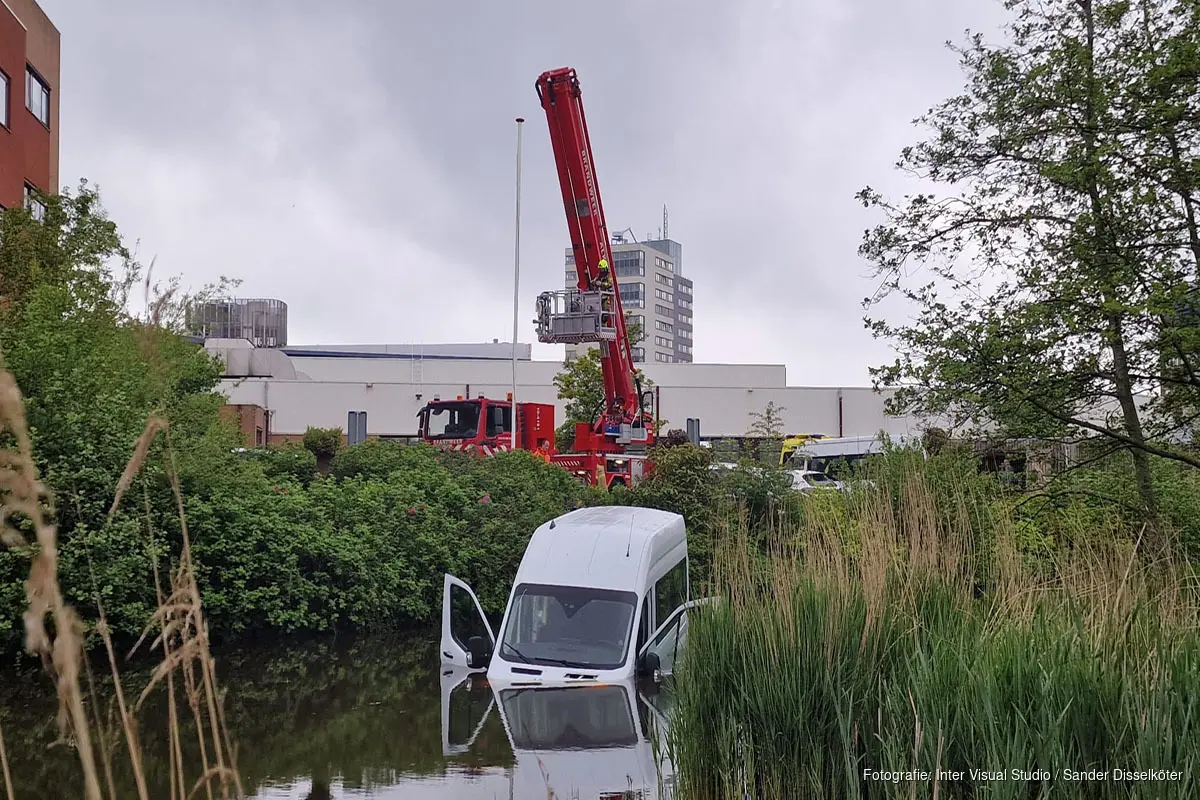 ALKMAAR - Woensdagochtend rond 08.15 uur is langs de Hertog Aalbrechtweg in Alkmaar een personenbusje te water geraakt na een aanrijding.