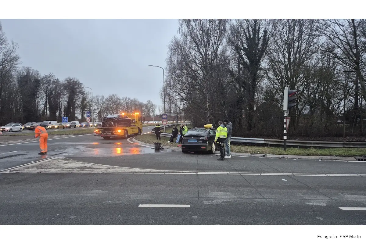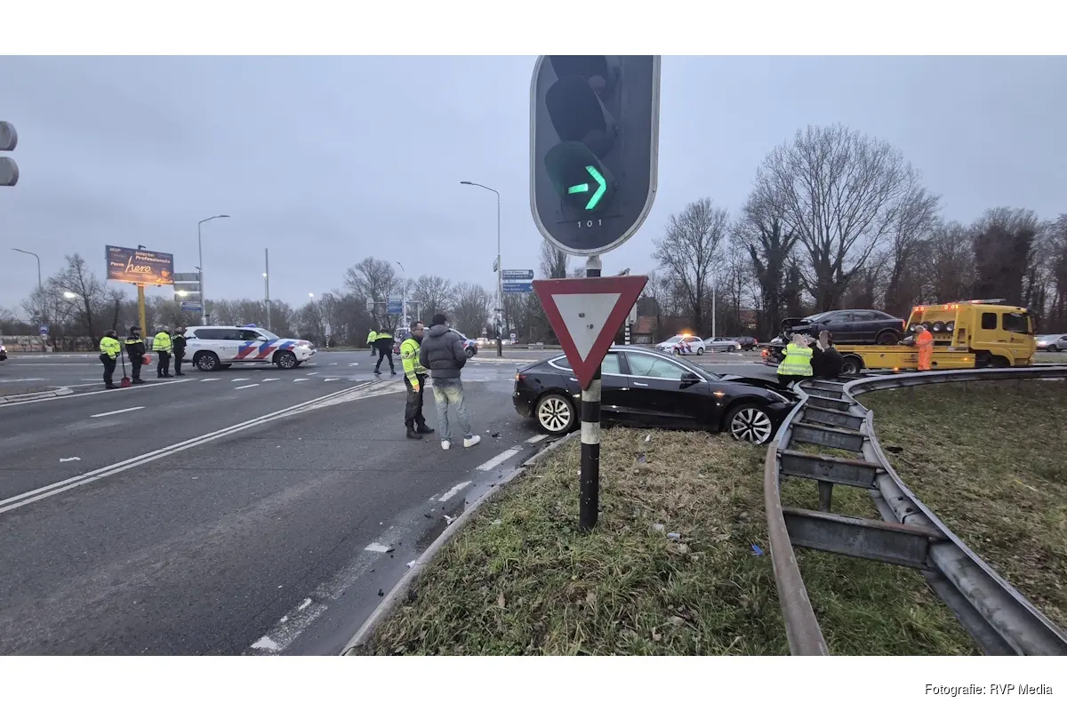 Door nog onbekende oorzaak kwamen twee voertuigen met elkaar in botsing op de kruising. Twee inzittenden zijn ter plaatse nagekeken door ambulancepersoneel, maar hoefden niet mee naar het ziekenhuis.