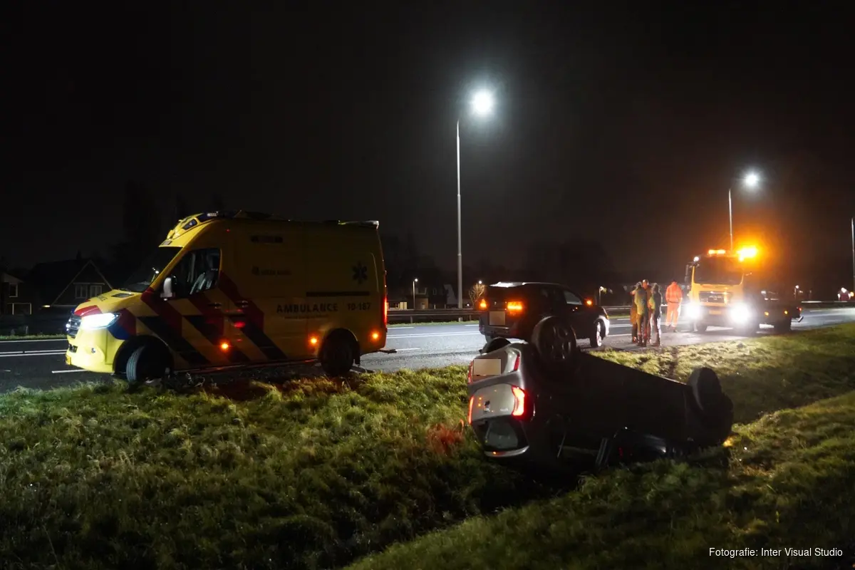BERGEN - In de nacht van zondag op maandag is een personenauto op de N9 ter hoogte van Bergen, in de slip geraakt. Het voertuig kwam via de andere weghelft op z'n kop in een greppel.
