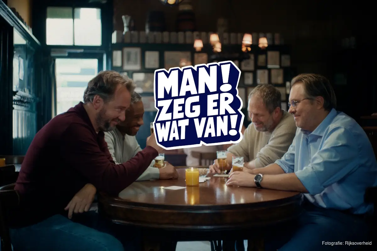 Uit het onderzoek blijkt dat bijna de helft (48%) van de mannen eerder iets zou zeggen als anderen in de groep hem zouden bijvallen. Met de campagne 'Man, zeg er wat van!' wil de Rijksoverheid mannen motiveren om elkaar aan te spreken op seksueel grensoverschrijdend gedrag richting vrouwen. Of dit nu vrienden zijn, collega's of sportteamgenoten. De campagne laat zien hoe je dit op een laagdrempelige manier kunt doen, zonder de sfeer in de groep te bederven of je plek in de groep te verliezen. Vind jij dat een opmerking of grap niet kan? Twijfel niet langer, en zeg er wat van.