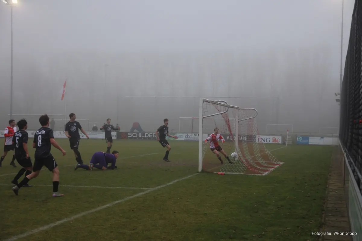 Halverwege de eerste helft kwamen de "Boys" op voorpsrong door een benutte strafschop van Luc Wagenaar, maar kort hierna tekende Kevin Schouten voor de gelijkmaker.