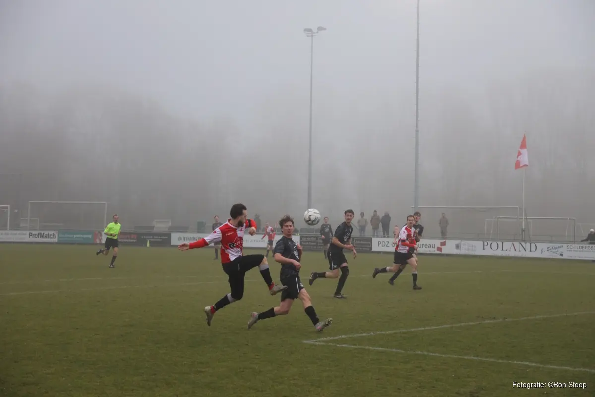 In een mistig en rommelig duel namen de gasten uit De Weere afstand via Rein Schilder en een benutte strafschop van Kevin Schouten. Uiteindelijk was het de aanvoerder en topscorer van Alkmaarsche Boys, Remco Reinhard, die toch nog een punt wist te redden voor de thuisploeg: 3-3.