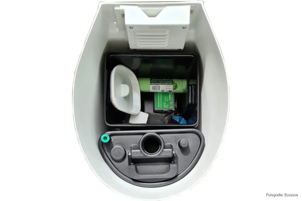 Een Ecosave droogtoilet, kunt je in diverse soorten krijgen, groot en klein, afhankelijk van de ruimte. Het gebruikt géén water, géén chemicaliën en scheidt urine van de ontlasting. Urine kan samen met het wastafelwater in de grijze vuilwatertank (die overal geleegd mag worden), Terwijl de ontlasting en het papier droog opgevangen worden in het toilet.