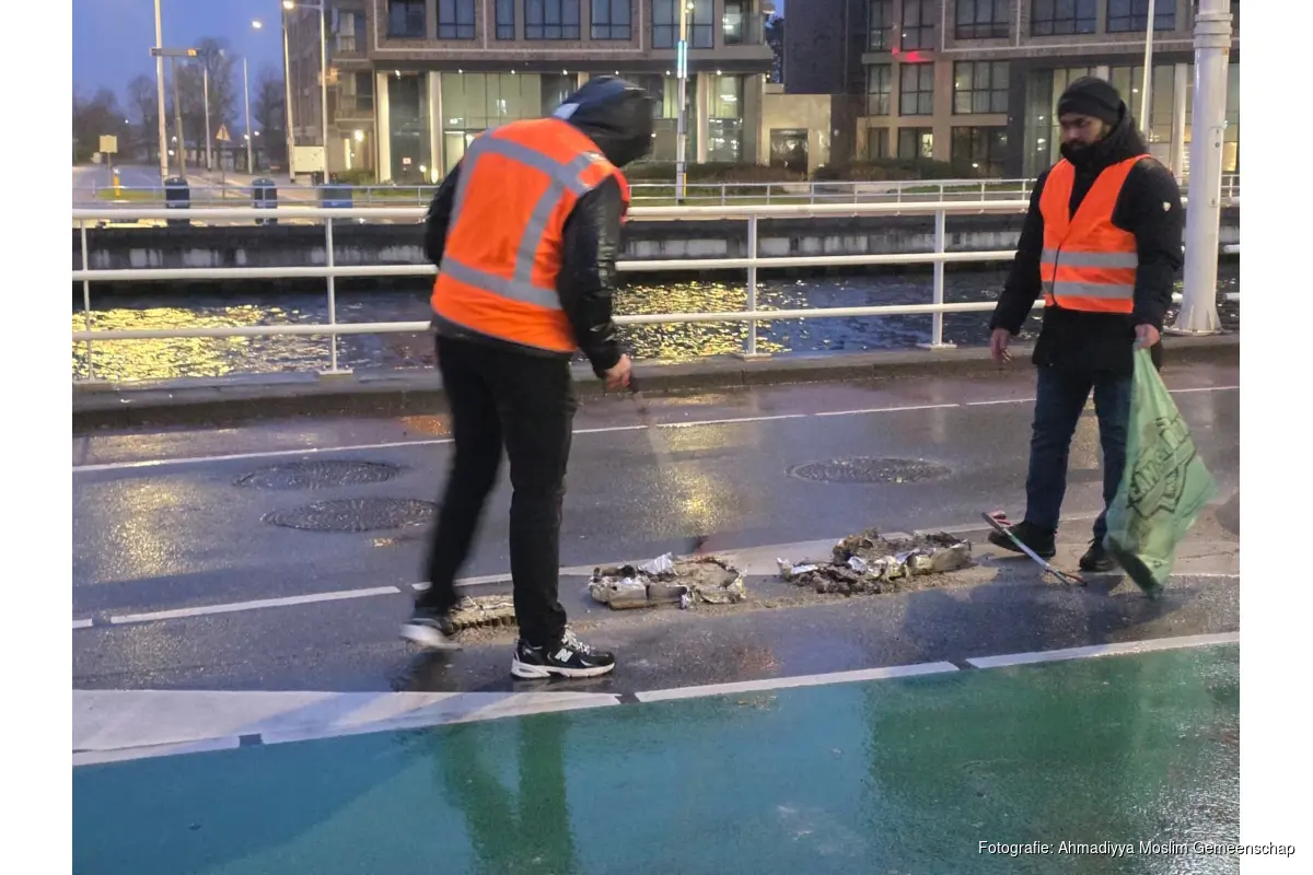 In de vroege ochtenduren verzamelden de leden zich. Na het eerste ochtendgebed, dat om 06.30 uur plaatsvond, gingen de vrijwilligers gezamenlijk de buurt in om straten, stoepen en plantsoenen te ontdoen van vuurwerkresten. Ondanks het geldende vuurwerkverbod in bepaalde gebieden, ruimde de groep van 35 personen het aangetroffen vuurwerkafval op om de omgeving weer schoon en veilig te maken.