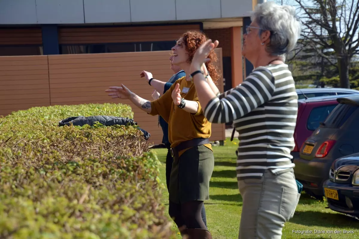 Gina Borst, namens Zuyder Waert, onderdeel van Magenta Zorg en waartoe ook de Geriant-kliniek behoort, was samen met enkele collega’s één van de initiatiefneemsters van het gebeuren. “Onze bewoners zitten al vier weken binnen en sinds twee weken mogen zij geen bezoek meer ontvangen. Wij hebben gemeend, speciaal met het oog op de Paasdagen, iets extra voor ze te moeten doen en dat begon vanmorgen met wat lekkers en daarnaast hebben wij Jan en Ria gevraagd hier te komen spelen. Dat het weer ook nog eens meezit maakt het natuurlijk extra mooi”, aldus Gina die glimlachend toekijkt hoe de bewoners genieten terwijl haar collega’s nog maar een dansje opvoeren. “Ja, het is niet alleen voor de bewoners genieten, maar ook voor ons. Plezier is ook de drijfveer geweest om ,want de vrolijkheid op de gezichten dat is waar we het voor doen”.