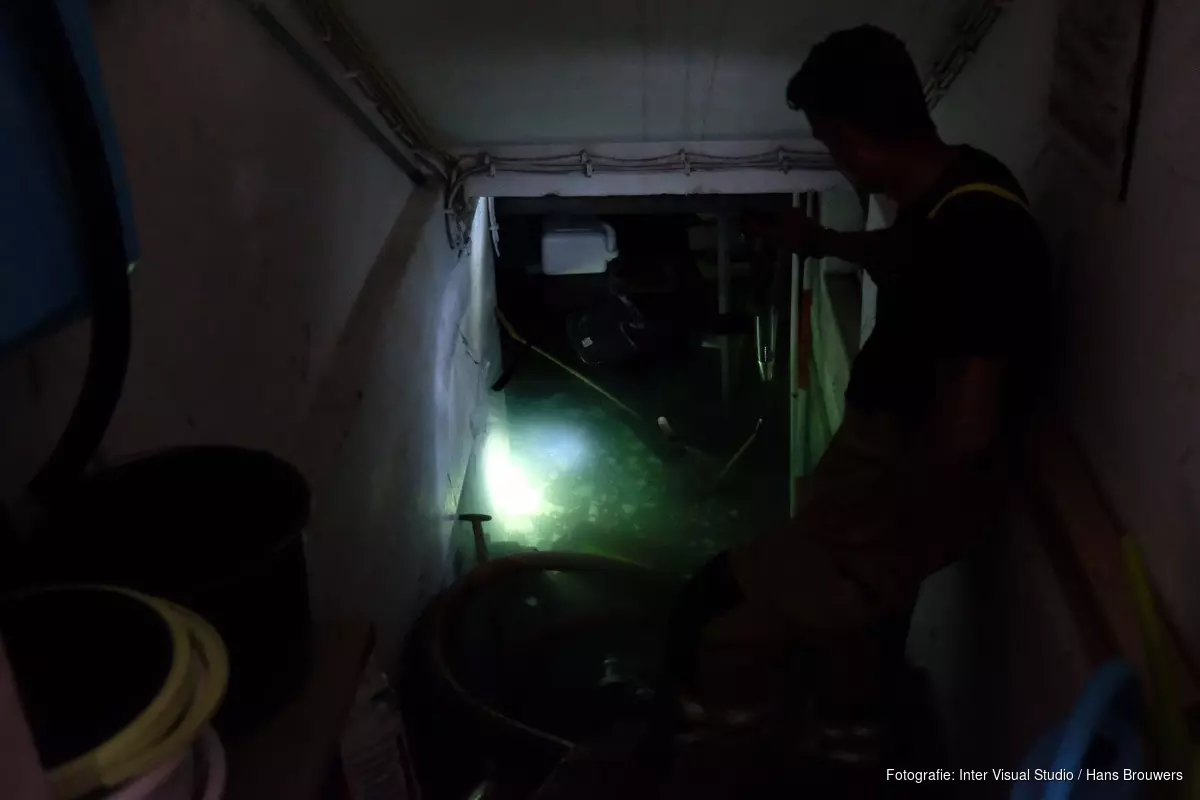 Brandweerlieden zijn nu met meerdere pompen de kelder aan het leegpompen. Daarna kan de schade pas worden opgenomen.