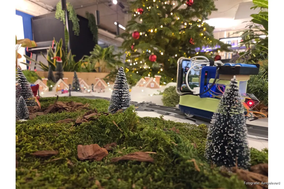 Van 15 t/m 24 december, tussen 09.00 en 17.00 uur, kunnen deelnemers live meekijken in het winterwonderland op kantoor. Daarbij kun je zelf even voor machinist spelen en bepalen welke kant de trein op gaat, en welk stukje kersttafereel of welke werkende collega’s je zo passeert.