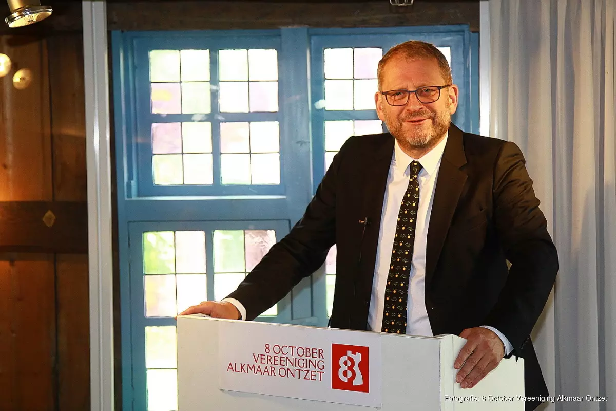 Alkmaar Ontzet kan niet zonder dit moment van stilstaan bij de vrijheidsstrijd van 1573, dat gelinkt wordt aan het heden. Ons verleden maakt onze toekomst. In Nederland herdenken wij dit jaar ook nog eens 75 jaar Vrijheid. De Vereeniging is trots dat Prof. Dr. Emile Schrijver, algemeen directeur van het Joods Cultureel Kwartier (JCK) de Ontzetrede heeft willen uitspreken. Niet live vanuit de Grote Sint Laurenskerk, maar vooraf opgenomen vanuit een ander iconisch historisch gebouw van Alkmaar, het Huis met de Kogel.