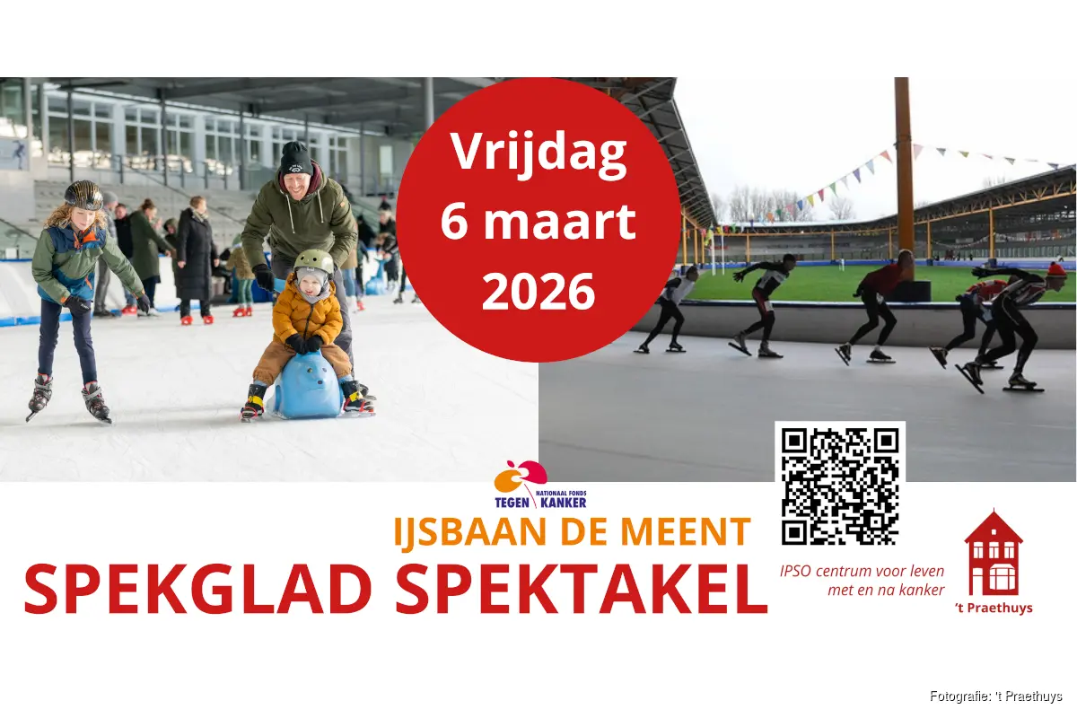 ALKMAAR - 'T Praethuys, het IPSO centrum voor mensen die leven met en na kanker, organiseert op vrijdag 6 maart 2026 een nieuwe gezellige winterse benefiet activiteit: Het Spekglad Spektakel op IJsbaan de Meent. Deelnemers kunnen tussen 15 en 21 uur komen schaatsen en halen daarmee, door zich te laten sponsoren, geld op voor het centrum. De opbrengst van deze dag wordt gebruikt om het aanbod van activiteiten van 't Praethuys verder uit te breiden, met name voor jongeren die te maken hebben met kanker.