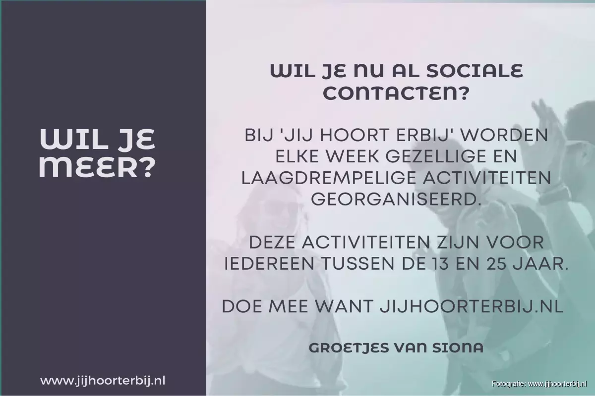 Jongeren zijn in de bloei én groei van hun leven en sociale contacten zijn hierbij een basis behoefte.