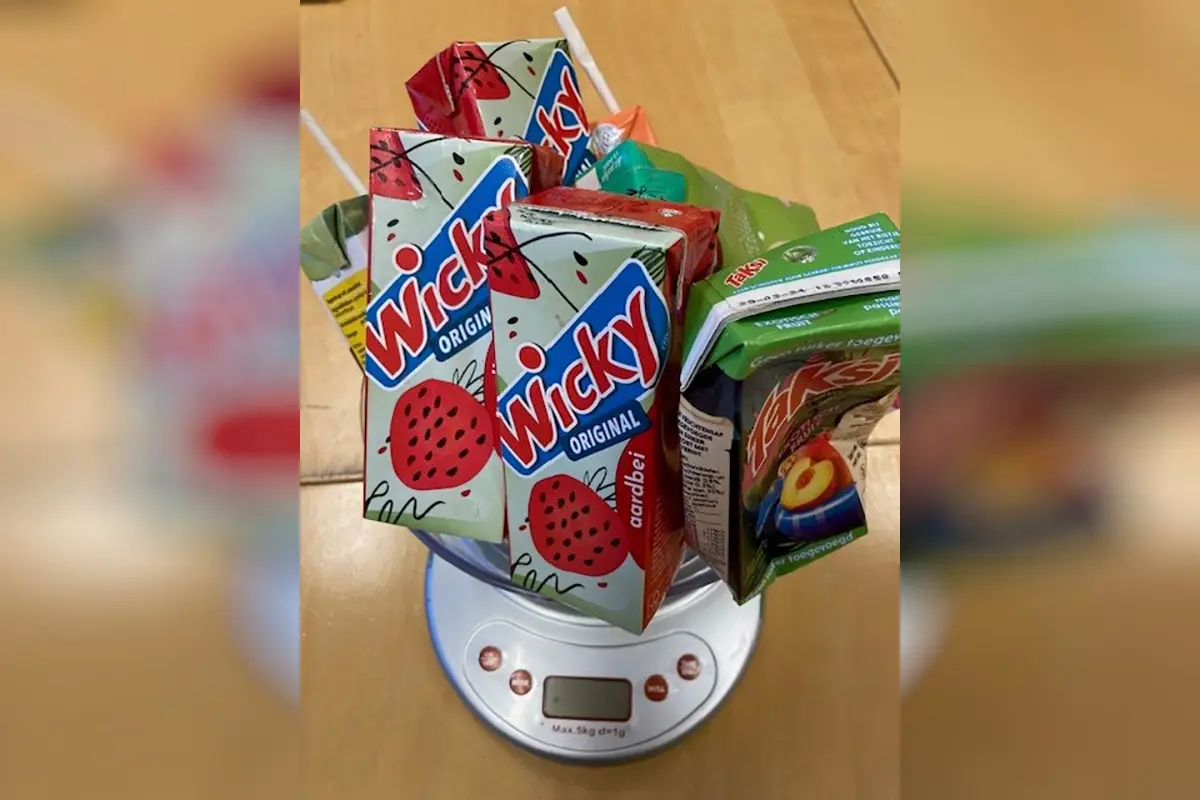Zij hebben tien lege drinkpakjes gewogen en de schoolweken van de zomervakantie tot de kerstvakantie geteld. Met behulp van verhoudingstabellen hebben zij berekend dat er 17.325 minder pakjes zijn gebruikt. Dat komt neer op tweehonderd kilo en 970 gram minder afval! In een heel schooljaar levert dat ruim vijfhonderd kilo minder afval op!
