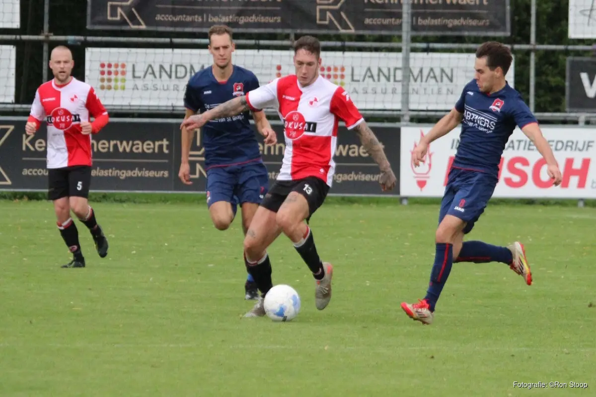 Opmerkelijk genoeg viel de eerste treffer pas in de blessuretijd van de eerste helft. Nadat Sean Hilberts al de paal had geraakt en Luc Wagenaar in kansrijke positie had naast gemikt probeerde topscorer en aanvoerder Remco Reinhard het maar eens van afstand en nu was het wel raak.