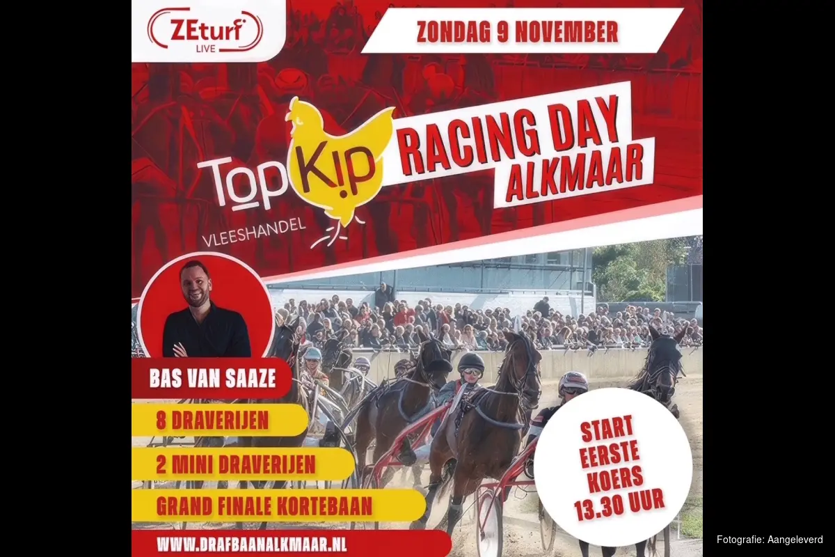 ALKMAAR - Nog twee koersmeetings te gaan dit jaar op de drafbaan in Alkmaar. Vrijdagavond 28 november vindt de afsluiting van het jaar plaats met het Friday Night Festival, maar eerst is er zondag de negende nog een prachtige koersdag. De Alkmaarse drafbaan bruist weer en dat zal ook zondag 9 november zo zijn. De start van de eerste koers is om 13.30 uur. Hoofdnummer is de Grote Prijs TopKip, vernoemd naar de hoofdsponsor van deze meeting.