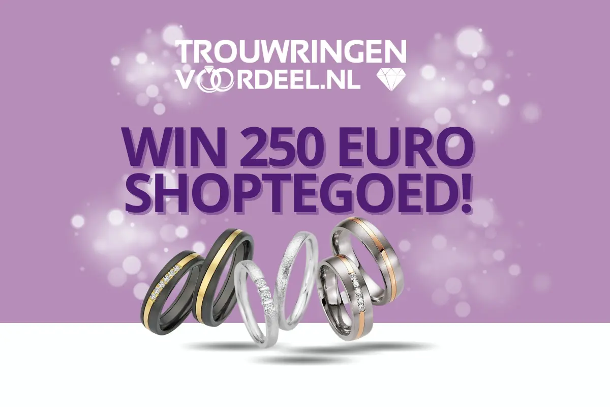 Bij trouwringenvoordeel.nl maak je namelijk kans om maar liefst €250 shoptegoed te winnen. Met dit bedrag kun je prachtige ringen uitzoeken en jullie speciale dag nog mooier maken.