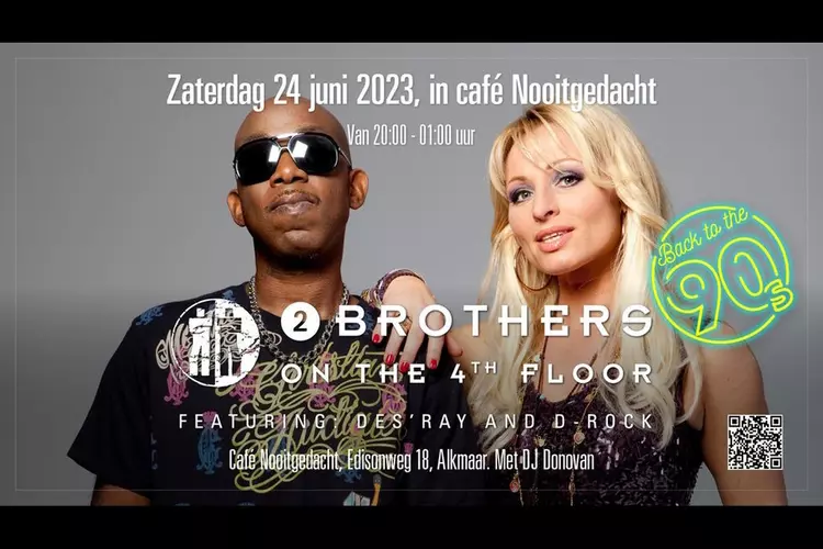 ALKMAAR- 90’s muziekliefhebbers opgelet! Maak je klaar voor een spetterende avond vol nostalgische hits uit de jaren 90, want op zaterdag 24 juni 2023 brengen de legendarische 2 BROTHERS ON THE 4TH FLOOR een onvergetelijk optreden naar Café Nooitgedacht in Alkmaar.