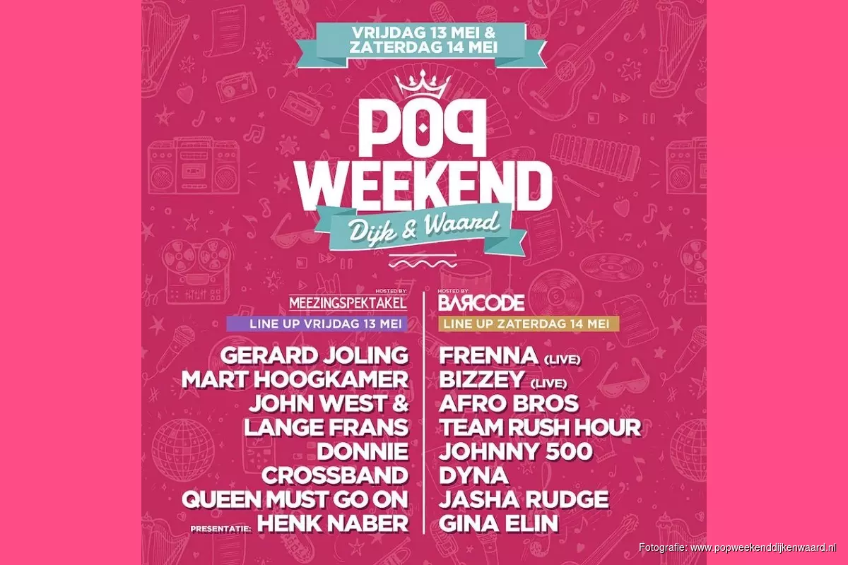 Zorg dat je er op tijd bij bent want het Popweekend Dijk & Waard wil je niet missen!