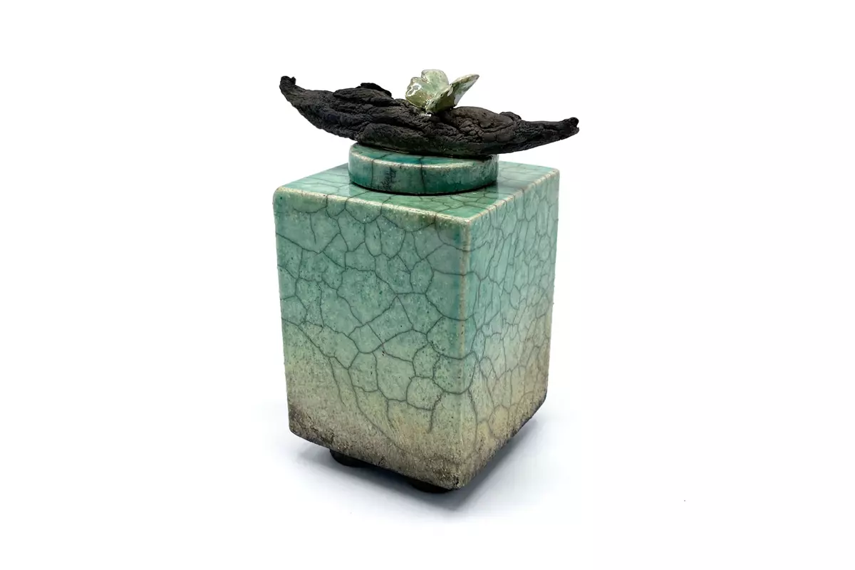 ,,Elke urn is uniek en bij het vervaardigen van de urnen probeer ik de persoonlijkheid van de overledenen zo dicht mogelijk te benaderen”, vertelt zij in Urn Atelier Vergouw. Het werk dat hier geëxposeerd wordt, laat zien dat deze vakvrouw haar kunstzinnige ambacht met veel liefde en aandacht vormgeeft. Tussen de draaischijven, mallen en werktafel weet deze creatieve vrouw haar verbeelding om te zetten in een bijzondere urn die troost kan bieden aan de nabestaanden. Marieke: ,,Door de mogelijkheden van keramiek wordt elke urn een mooi, warm en persoonlijk herdenkingsobject.” De meeste urnen die Marieke maakt zijn raku gestookt, een van oorsprong Japanse techniek. Naast de gebruikelijke maten zijn er kleine exemplaren voor een beetje as, speciale urnen voor baby’s, het is mogelijk een duo-urn te laten maken of een urn voor een geliefd gestorven huisdier. Kijk voor prachtige voorbeelden op www.urn-atelier.nl.