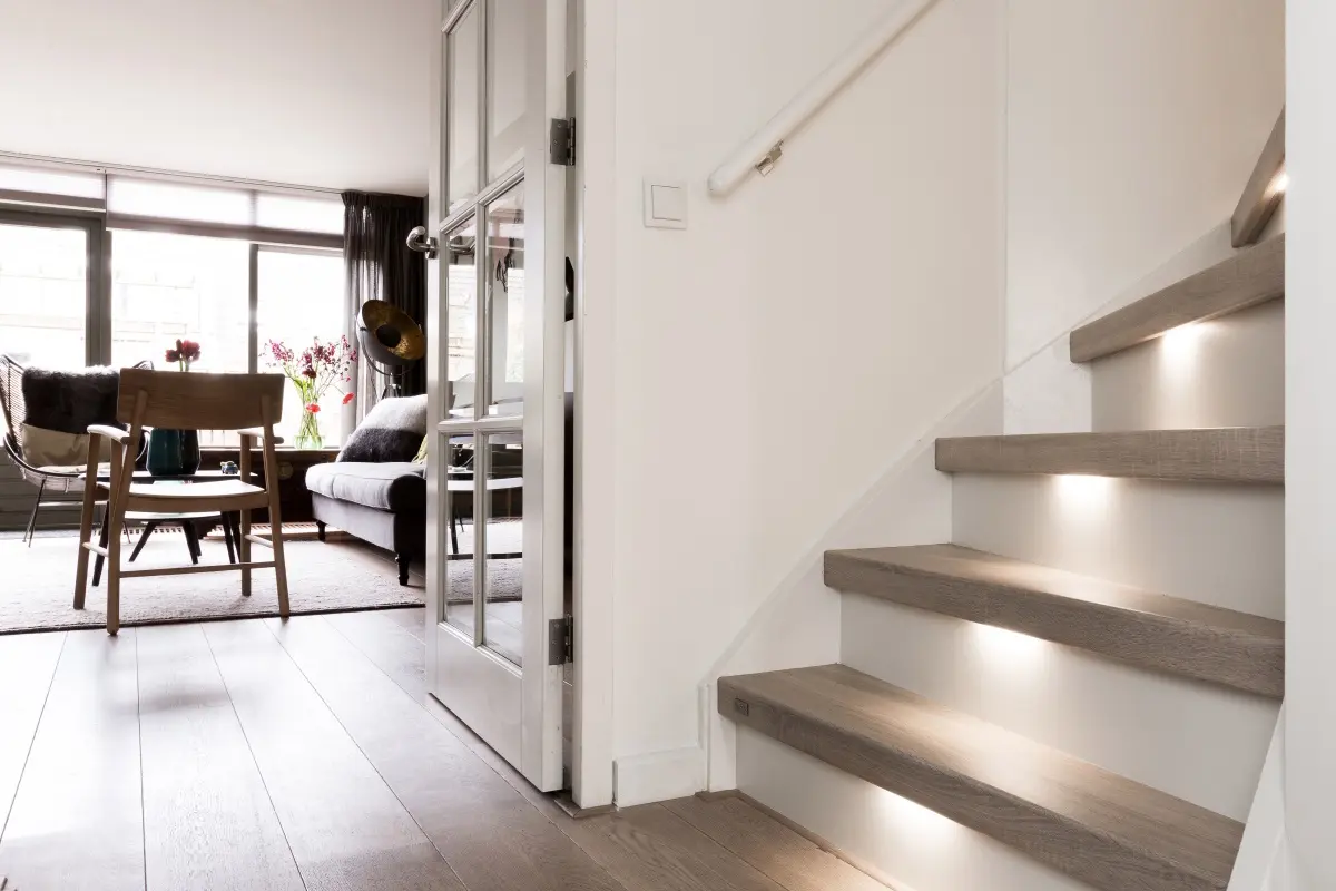 Bij Upstairs kijken we verder dan de traptreden alleen. Wanneer wij jouw trap renoveren, komt ook de afwerking uitgebreid aan bod. En daar hoort trapverlichting uiteraard bij. Kies je voor warme of koele trapverlichting in de treden van je trap? Onze trapverlichting is niet los verkrijgbaar, maar enkel in combinatie met een traprenovatie. Wij informeren je graag over de mogelijkheden.